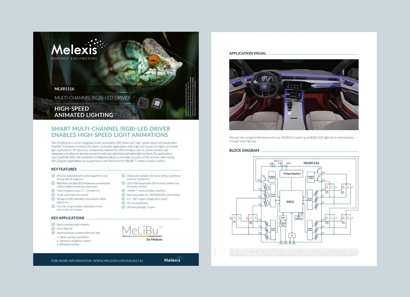 Een van de toonaangevende technologiebedrijven in België. Als wereldwijde leverancier van micro-elektronische toepassingen heeft Melexis visuals en communicatie nodig die de technisch gecompliceerde informatie duidelijk weergeeft. Oog voor details en punctualiteit zijn daarbij van ontzettend belang.